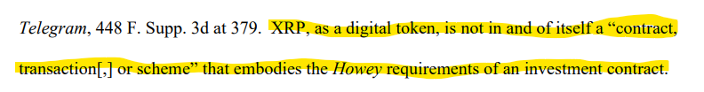 The court held that the “Programatic Sales” of XRP did not amount to an investment contract and, therefore, did not constitute the sale of securities.